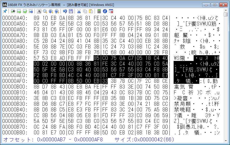 ●ヘキサエディタ(バイナリエディタ)「16Edit FX」の機能補足と基本注意事項- 「うさみみハリケーン」には、ヘキサエディタ「へきさにゃん」を同梱しています。必要に応じて使い分けてください。